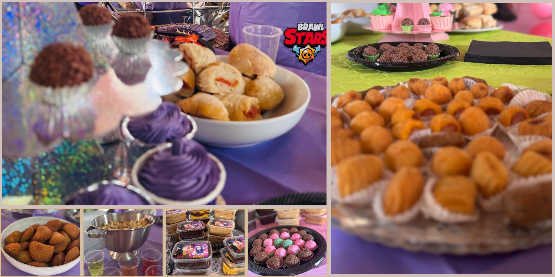 Se o cliente desejar servir comida durante a festa, disponibilizamos serviço de catering em parceria com fornecedores profissionais e de confiança.