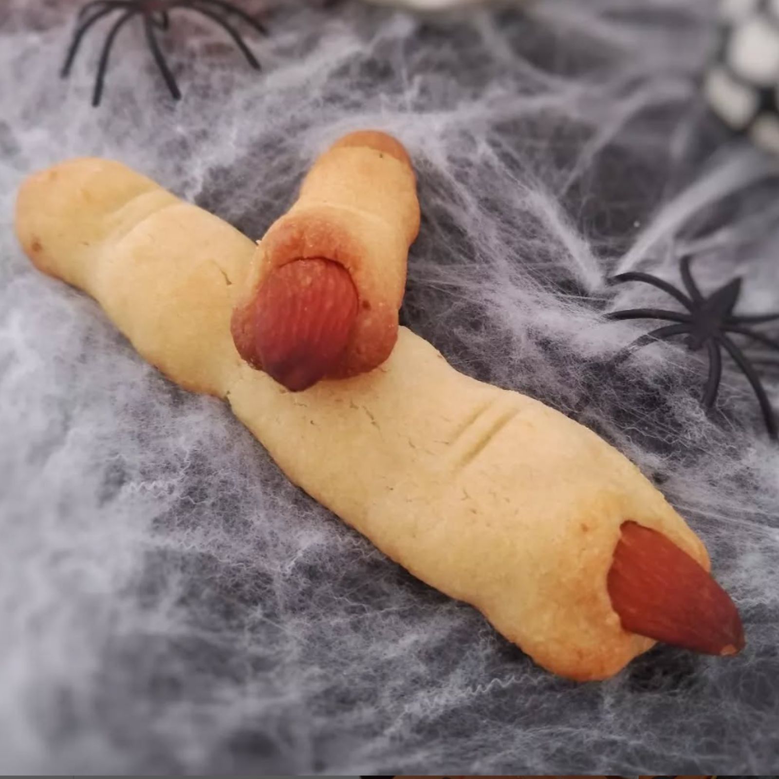 Nossas bolachas “Dedo de Bruxa” têm cerca de 9 cm e são moldadas à mão para ganhar forma realista e divertida — perfeitas para festas temáticas, Halloween ou para quem adora um toque criativo nos doces.